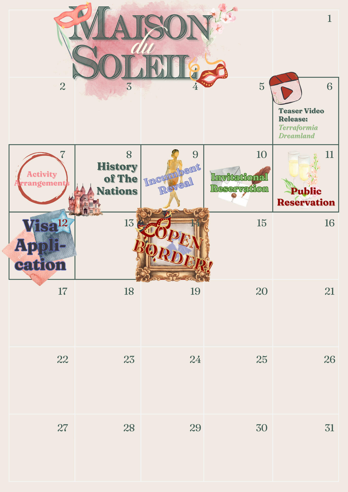 During the banquet of Maison du Soleil, Revered Patrons are prohibited to carry out external activities such as Plato, Hyperbeam, or anything that poses the risk of revealing your true identity. Anyone who wishes to host a game shall notify the Incumbents prior.